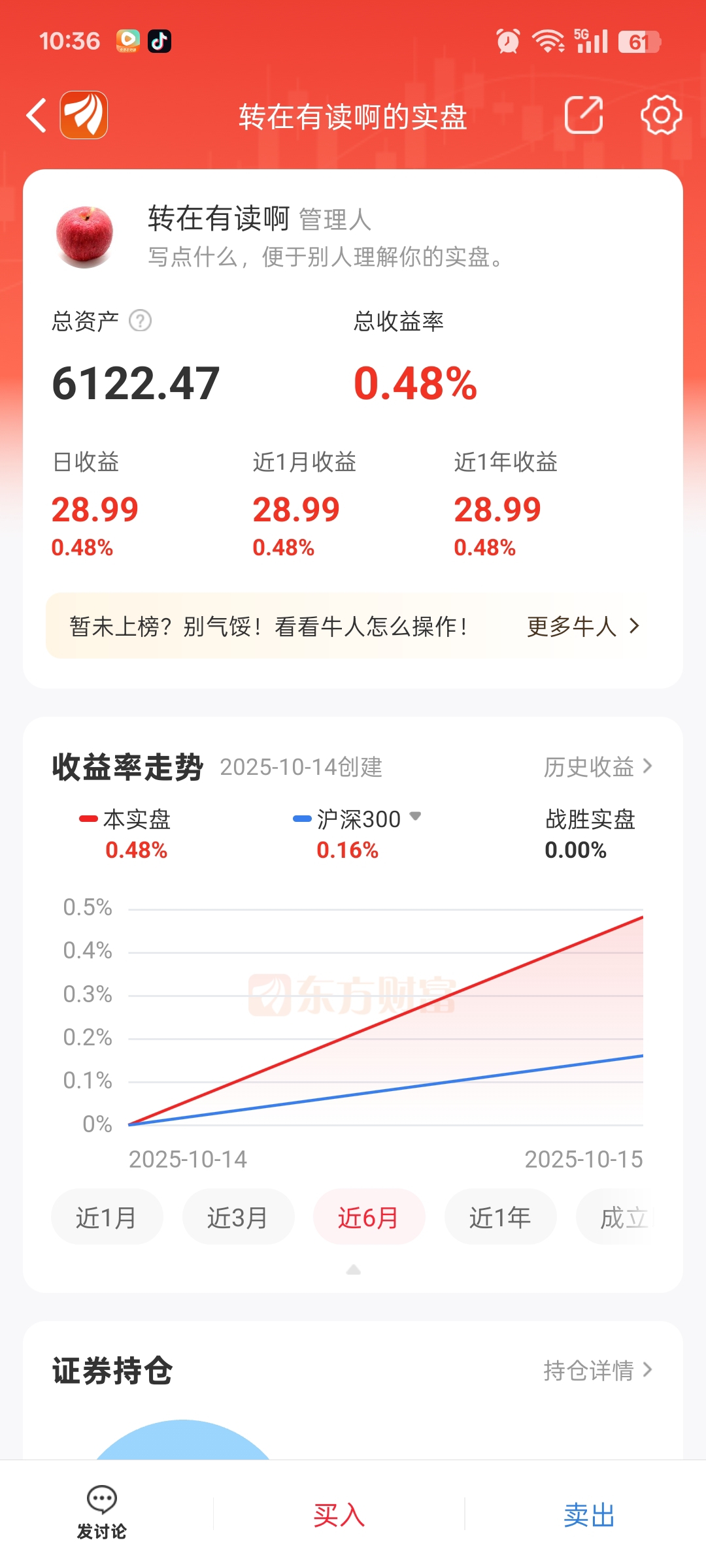 重新来,管住手2025年10月15日开始初始资金:6093第1日盈亏:+0.48