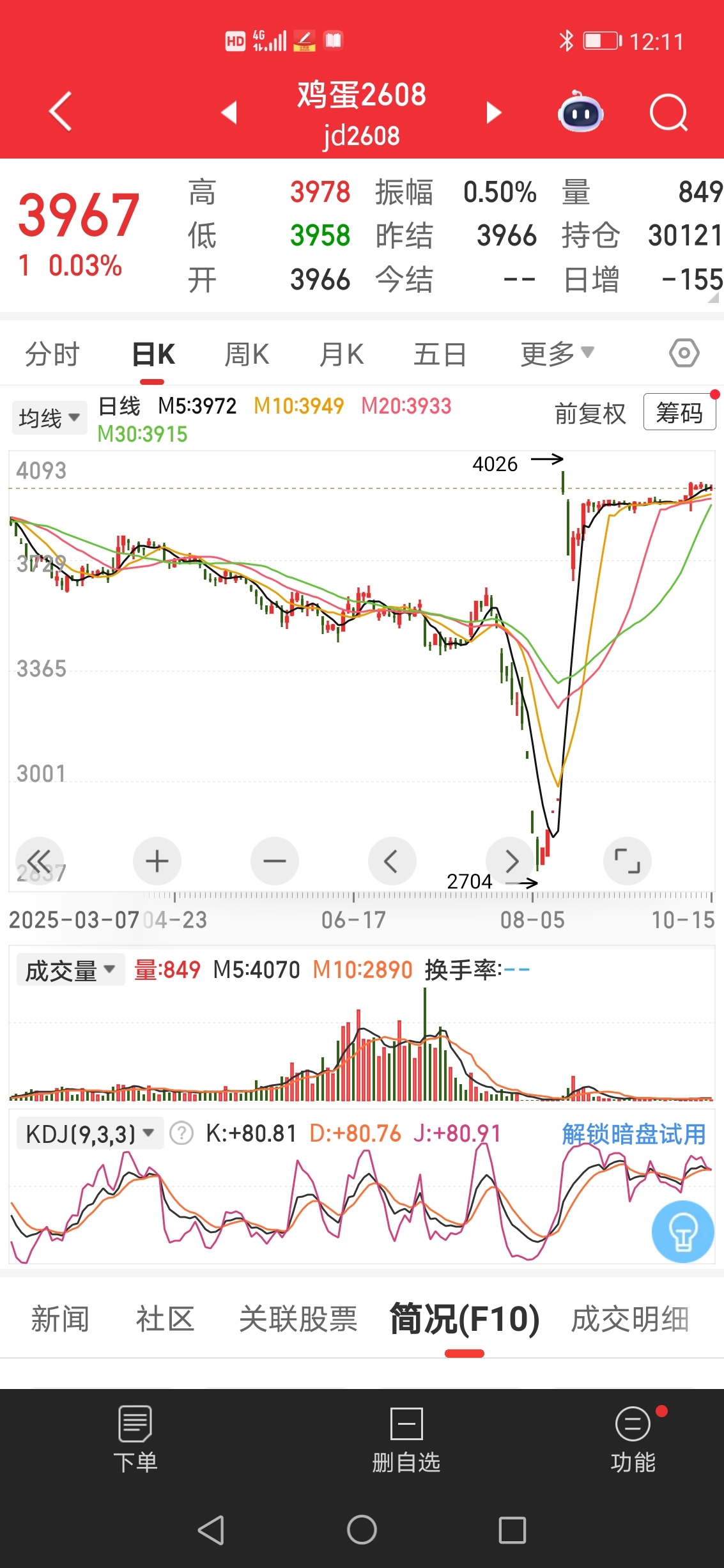 鸡蛋现货价格从节前3600元到现在2600元