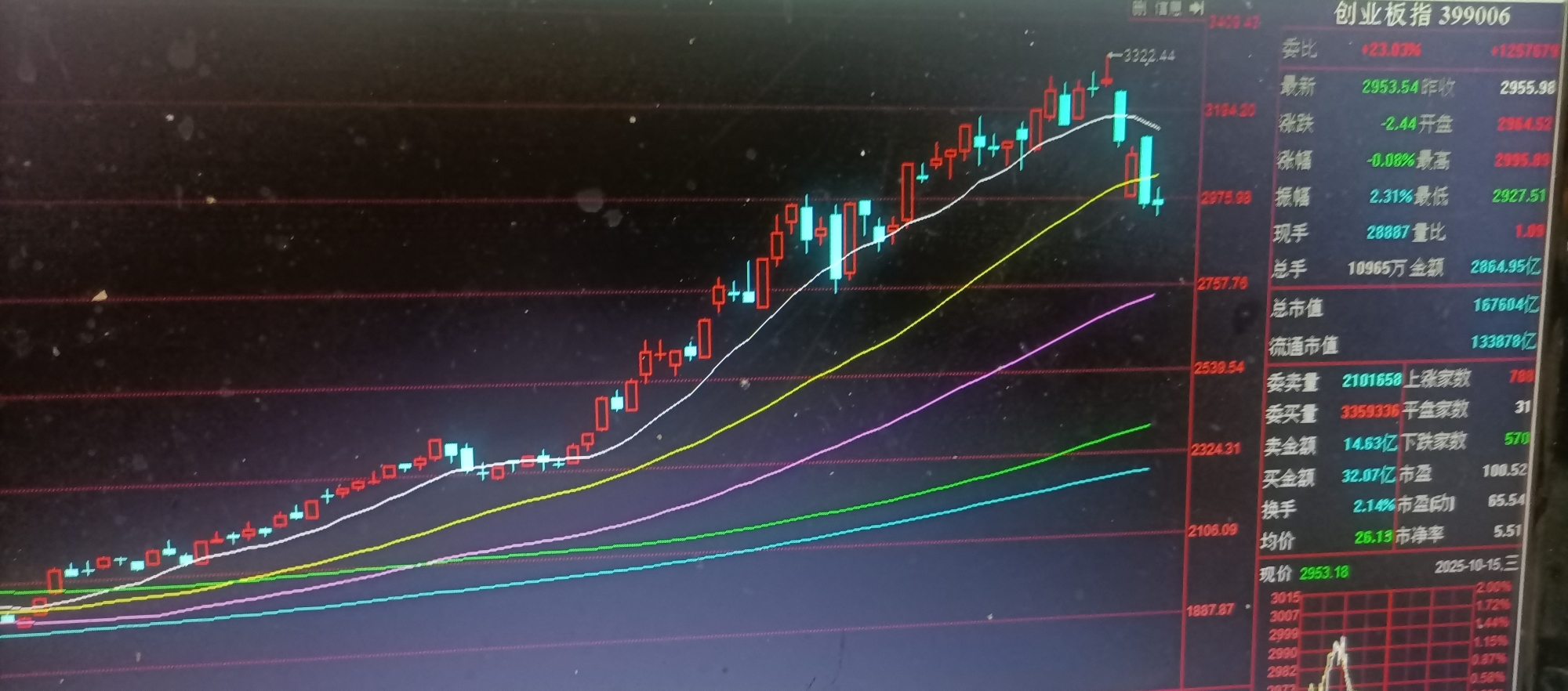 创业板指上周五跌破10日均线后,昨今再跌破30日均线
