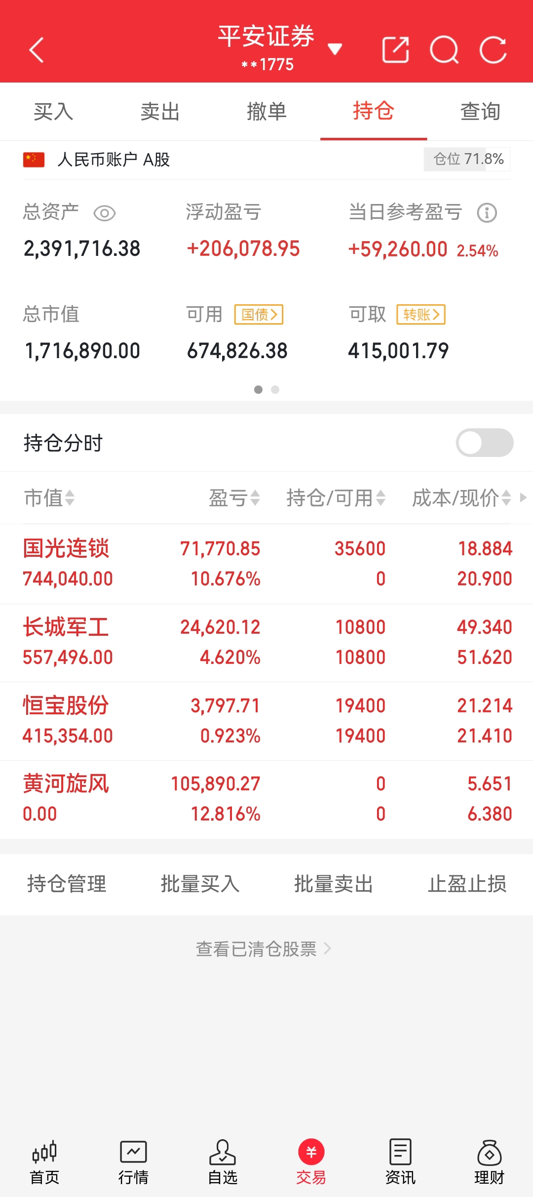 10月15日大家中午好,目前持仓以下