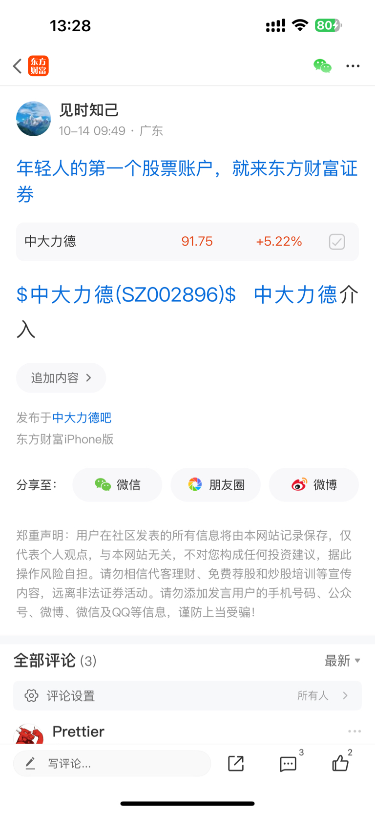 温馨提示: 1.根据《证券法》规定,禁止编造、传播虚假信息或者误导性信息,扰乱证券市场;2.用户在本社区发表的所有资料、言论等仅代表个人观点,与本网站立场无关,不对您构成任何投资建议。用户应基于自己的独立判断,自行决定证券投资并承担相应风险。《东方财富社区管理规定》