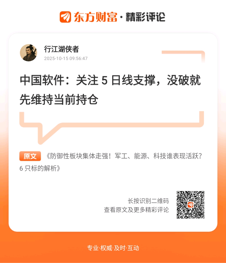 这些信息正好是我需要的,太及时了,太谢谢你啦!//@行江湖侠者 :中国软件:关注 5 日线支撑,没破就先维持当前持仓