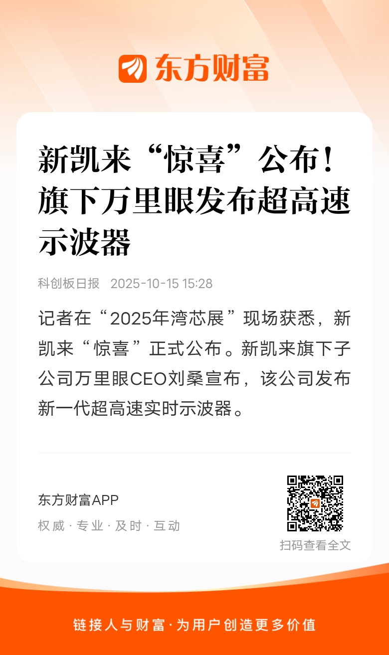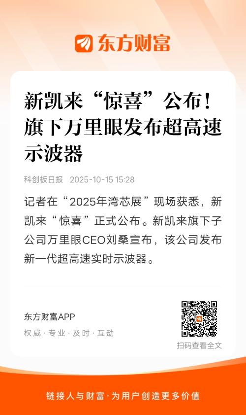 记者在“2025年湾芯展”现场获悉,新凯来“惊喜”正式公布。新凯来旗下子公司万里眼CEO刘桑宣布,该公司发布新一代超高速实时示波器。性能方面,该产品带宽突破90GHz(全球No.2);智能化方面,该产品为全球首个超高速智能示波器,业界首创智能参数寻优,拥有智能噪声抑制功能;体验感方面,该产品全球首个全面屏示波器,拥有极致简约设计美学,能够进行智能终端式交互。