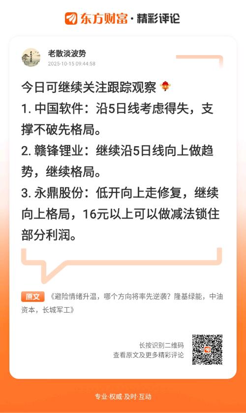 可看回晚评 2025年10月14日 16:58 可点 >>> 弱平衡延续,月底突破。北方稀土 —— 中国软件&赣锋锂业