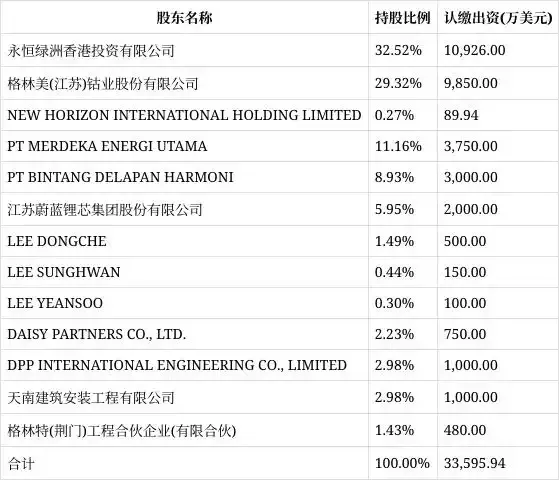 具体来看,本次交易对手方包括格林美(江苏)钴业股份有限公司、NEW HORIZON INTERNATIONAL HOLDING LIMITED、永恒绿洲香港投资有限公司等多方。其中,格林美(江苏)钴业股份有限公司为深交所上市公司格林美股份有限公司全资子公司。本次增资扩股前,持股99.10%,增资扩股后降至29.32%。