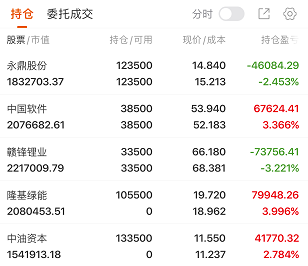 操作上,新增隆基绿能、中油资本、长城军工,继续持有永鼎股份、中国软件、赣锋锂业。