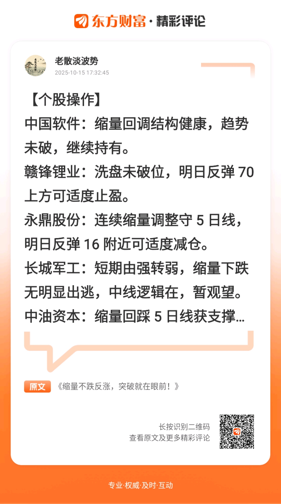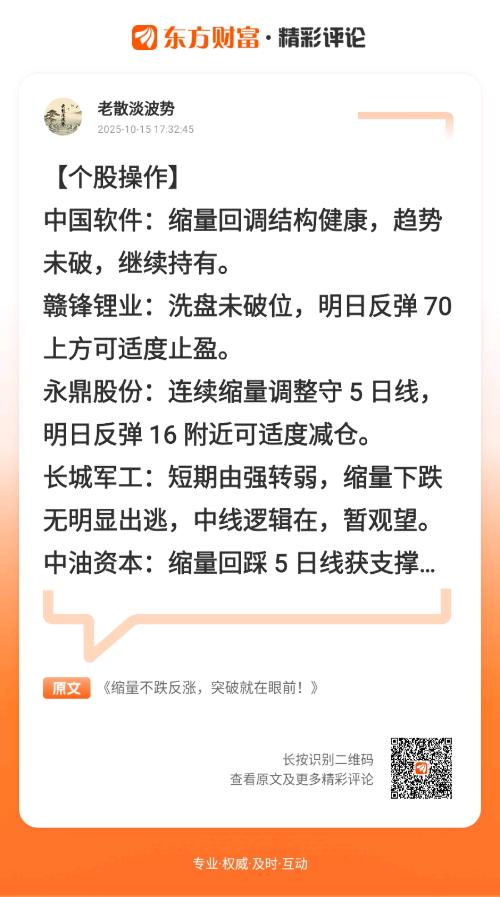可看回早评 2025年10月15日 00:05 可点 >>> 避险情绪升温,哪个方向将率先逆袭?隆基绿能,中油资本,长城军工