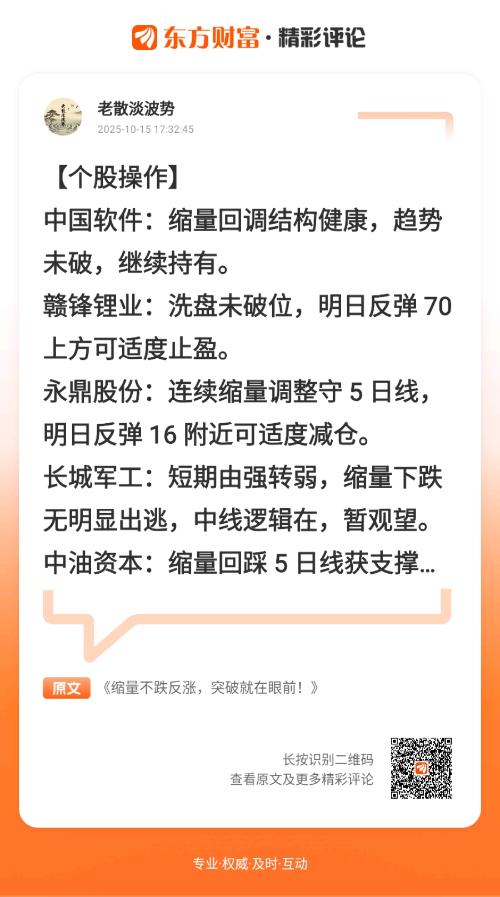 可看回早评 2025年10月15日 00:05 可点 >>> 避险情绪升温,哪个方向将率先逆袭?隆基绿能,中油资本,长城军工