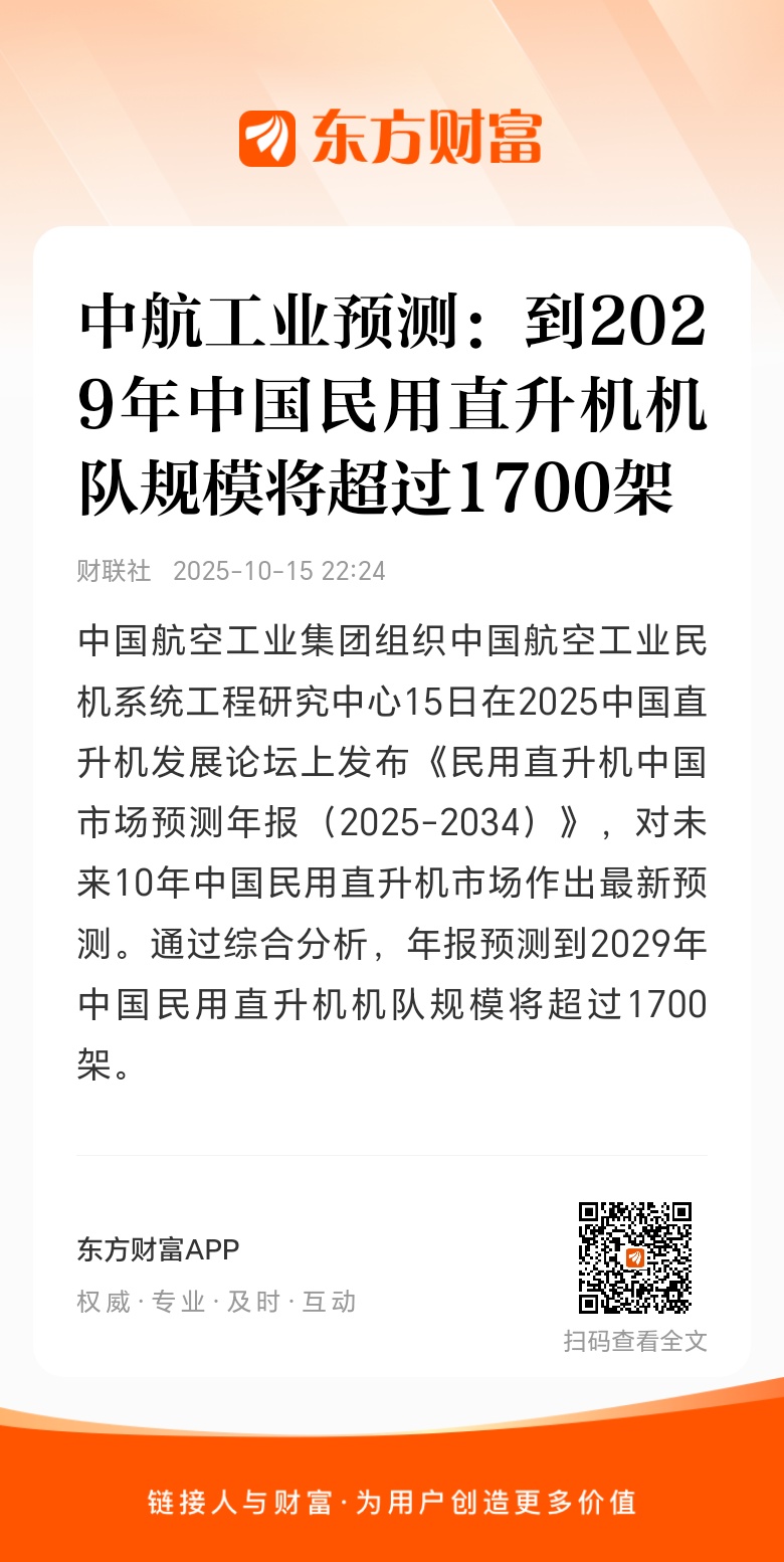 中国航空工业集团组织中国航空工业民机系统工程研究中心15日在2025中国直升机发展论坛上发布《民用直升机中国市场预测年报(2025-2034)》,对未来10年中国民用直升机市场作出最新预测。通过综合分析,年报预测到2029年中国民用直升机机队规模将超过1700架,在无人机、eVTOL等新质低空装备的替代影响下,2030年之后直升机机队增速将放缓,预计2034年机队规模将突破2000架。