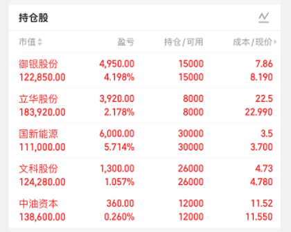 御银股份今日大姿金流入较多,目前看走得也还可以,早盘大概率还有冲高,由于昨天买入成本很低,今天判断指数冲高回落,所以今天打算早盘冲高时看情况走掉。