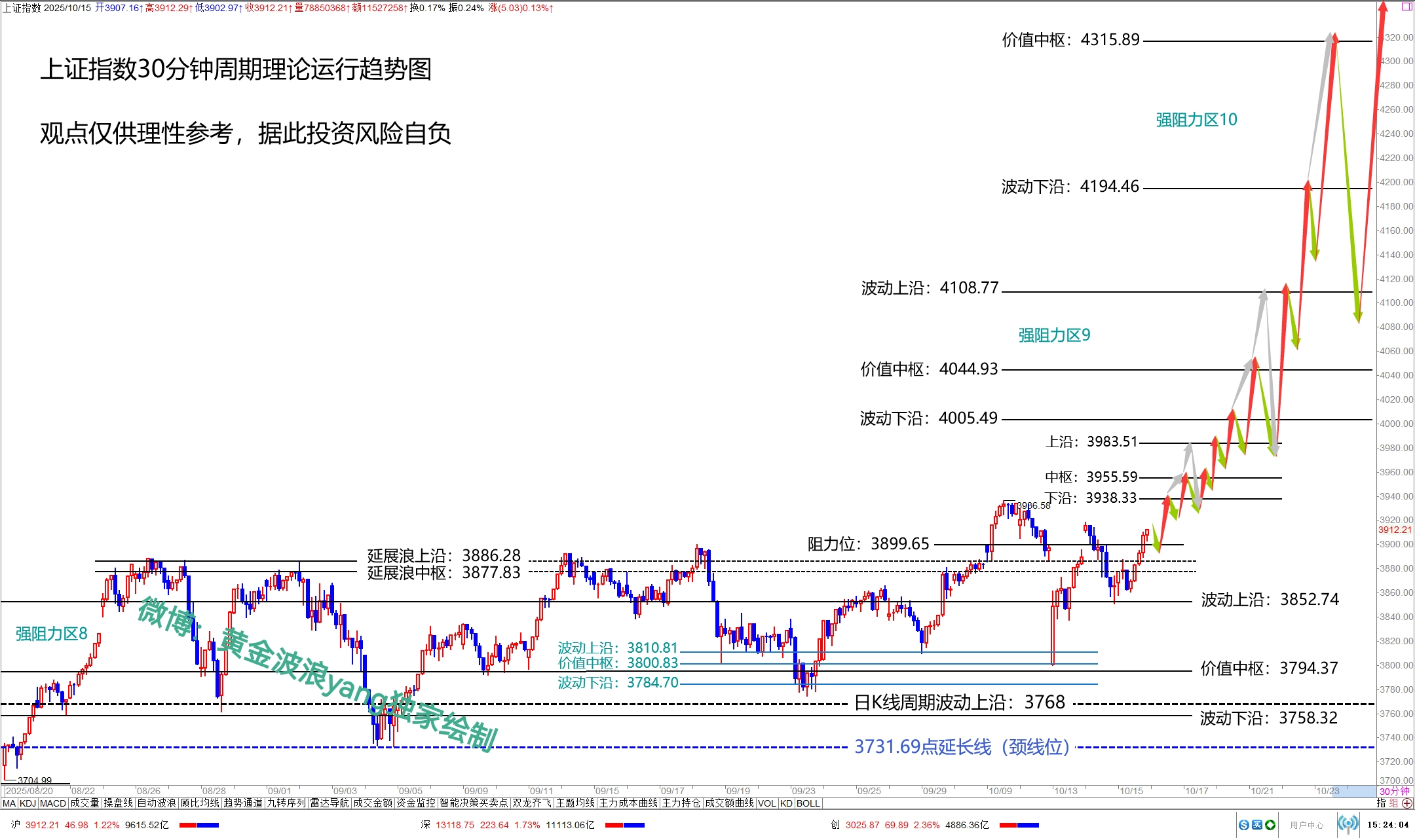 这是我在《昨日收评》中为大家预测并绘制的《沪指30分钟周期理论运行趋势图》