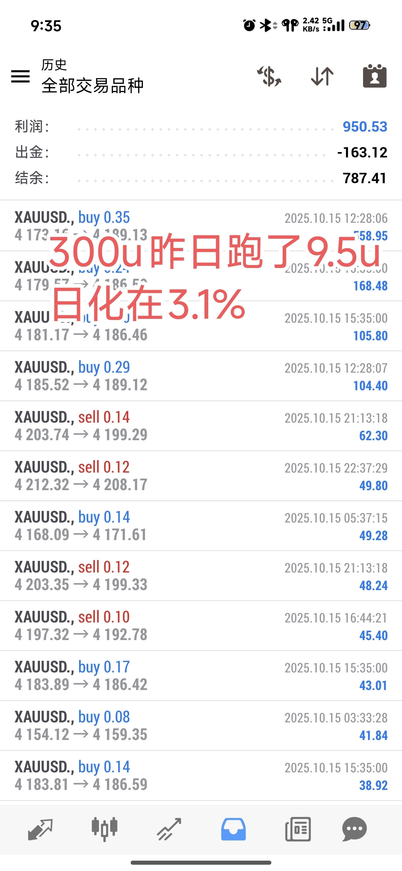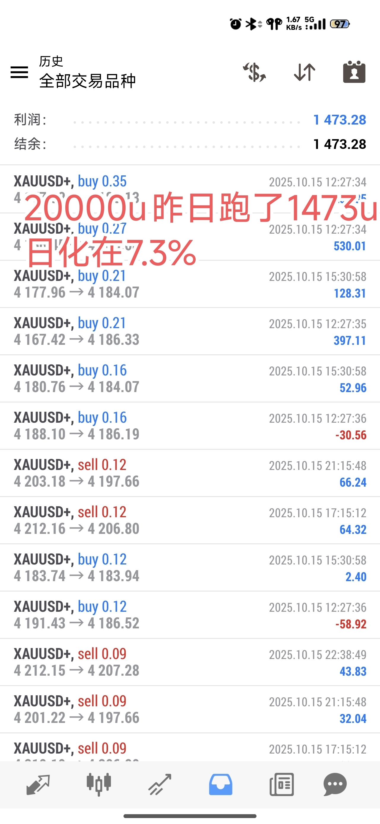 10.15号战绩分享20000u昨日跑了1473u,日化在7.3%300u昨日跑