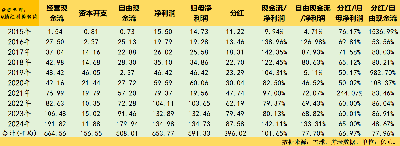 PS:考虑到现金流数据对分析企业的重要性,这里再补充一张过去十年的现金流补充资料: