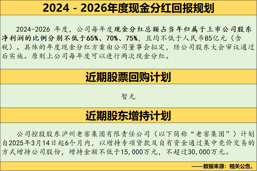 接下来我们来看看老窖近期的一些股东回报计划: