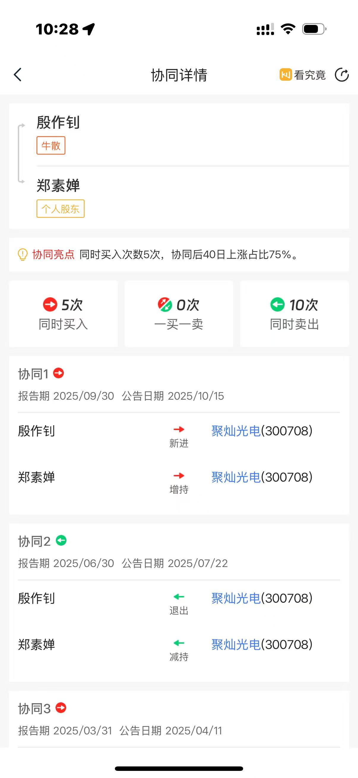 牛散殷作钊最新和个人股东郑素婵出现协同,这二人之前出现多次同时买入卖出行为,而且