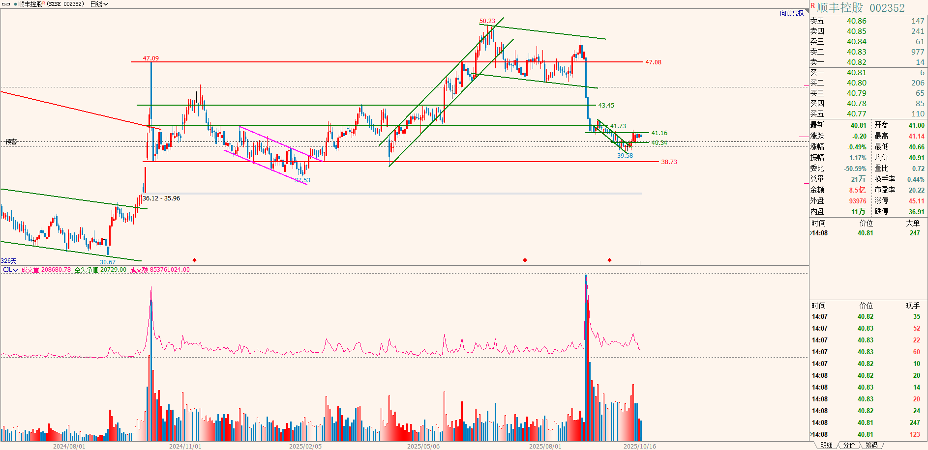 行情在大跌之后,开始减速。当前的减速动作愈加收敛。股价在41.16的压力位之下连