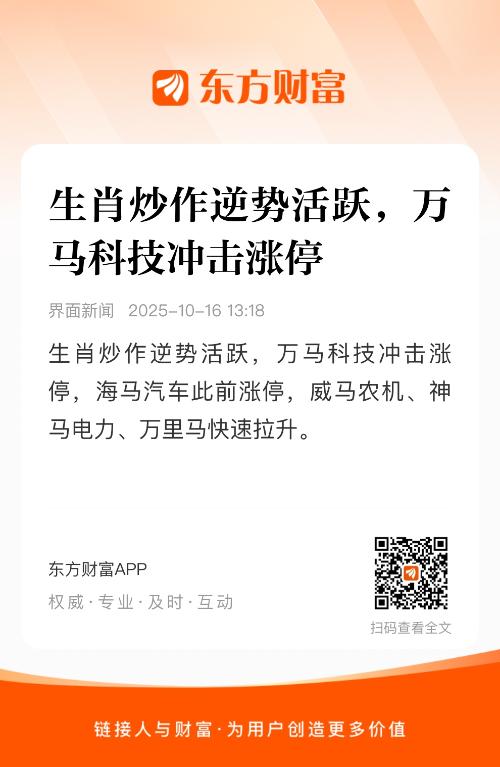 生肖炒作逆势活跃,万马科技冲击涨停,海马汽车此前涨停,威马农机、神马电力、万里马快速拉升。