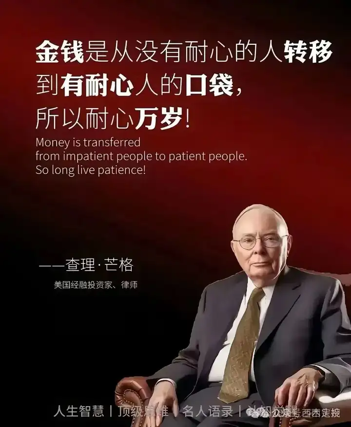 查理芒格曾说过:金钱是从没有耐心的人转移到有耐心人的口袋,所以耐心万岁。
