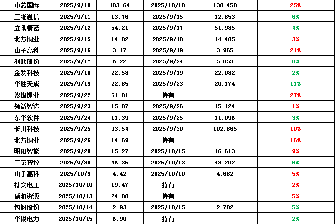 近期持仓记录