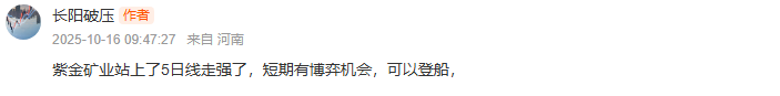 $紫金矿业(SH601899)$:紫金矿业早盘接力不错,股价一直在5日均线上方运行,我们也顺势介入了,午后虽有抛压,股价回踩10日均线,但随后显现出一定的接力意愿,目前整体处于震荡整理态势,并非趋势转弱,该股仍有转强向上的预期,继续格局。