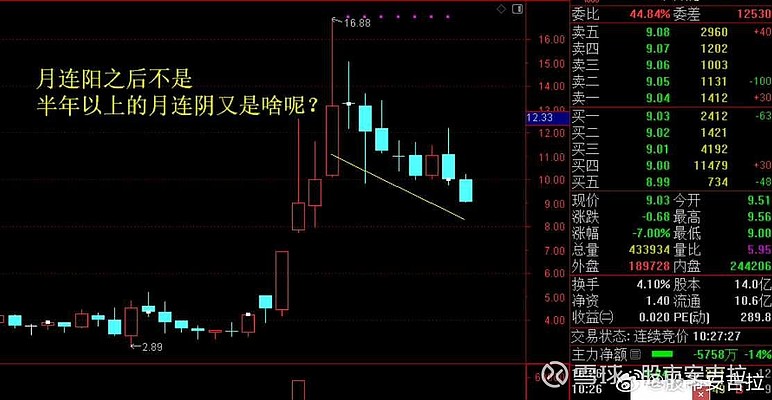接下来的操作,哪种抄底或加仓需小心被深套?月连阳之后需警惕月连阴; 月连阳之后需警惕至少半年以上的调整;真的,图表最是有规律,复盘的话,其实相当一批个股早已见了大顶,而后再涨也只不过是反复磨顶出货;但又不用空仓,因为大底部也有相当一批个股在底部趴着,这种行情选股就成了重中之重;月连阳之后不是半年以上的月连阴又是啥呢?这种走势一抓一大把;