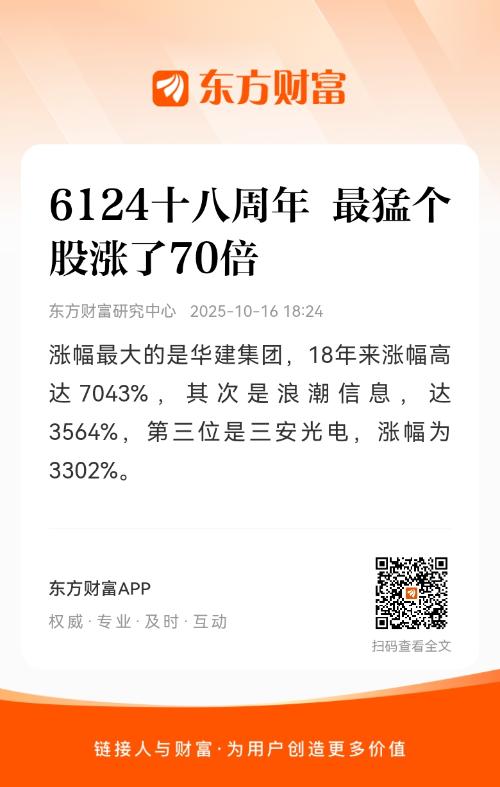 涨幅最大的是华建集团,18年来涨幅高达7043%,其次是浪潮信息,达3564%,第三位是三安光电,涨幅为3302%。