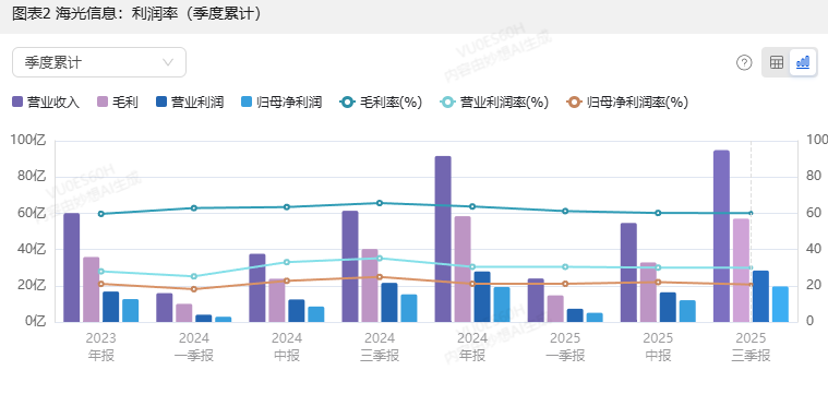 卖货多不代表赚得多,得看 “每卖 100 块货,能赚多少纯利润”(利润率)。海光这季度的赚钱能力,有点 “高开稳走” 的意思 —— 虽然比去年略降,但还是比很多同行能赚。