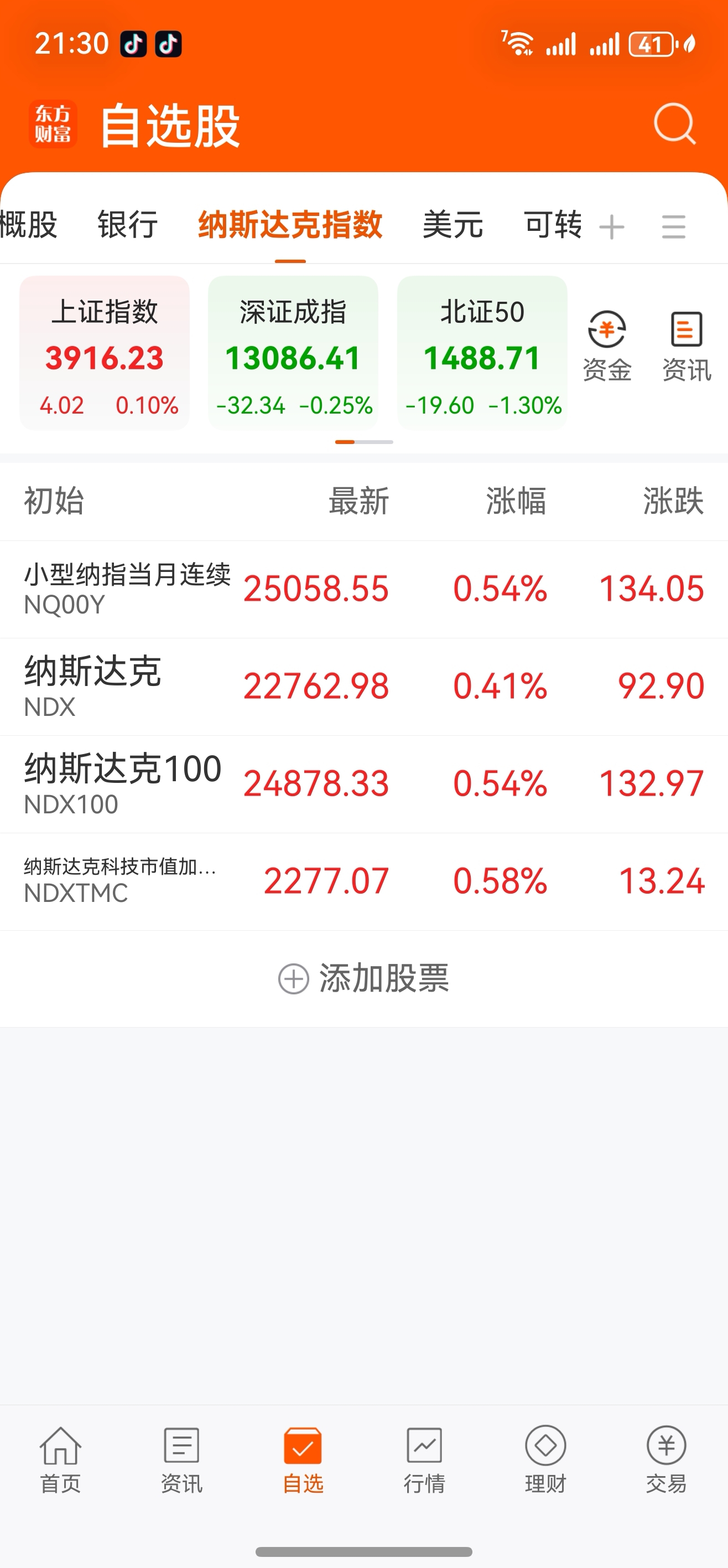 在今天晚上21点30分美股开盘的时候,观察纳斯达克100指数是涨+0.54%