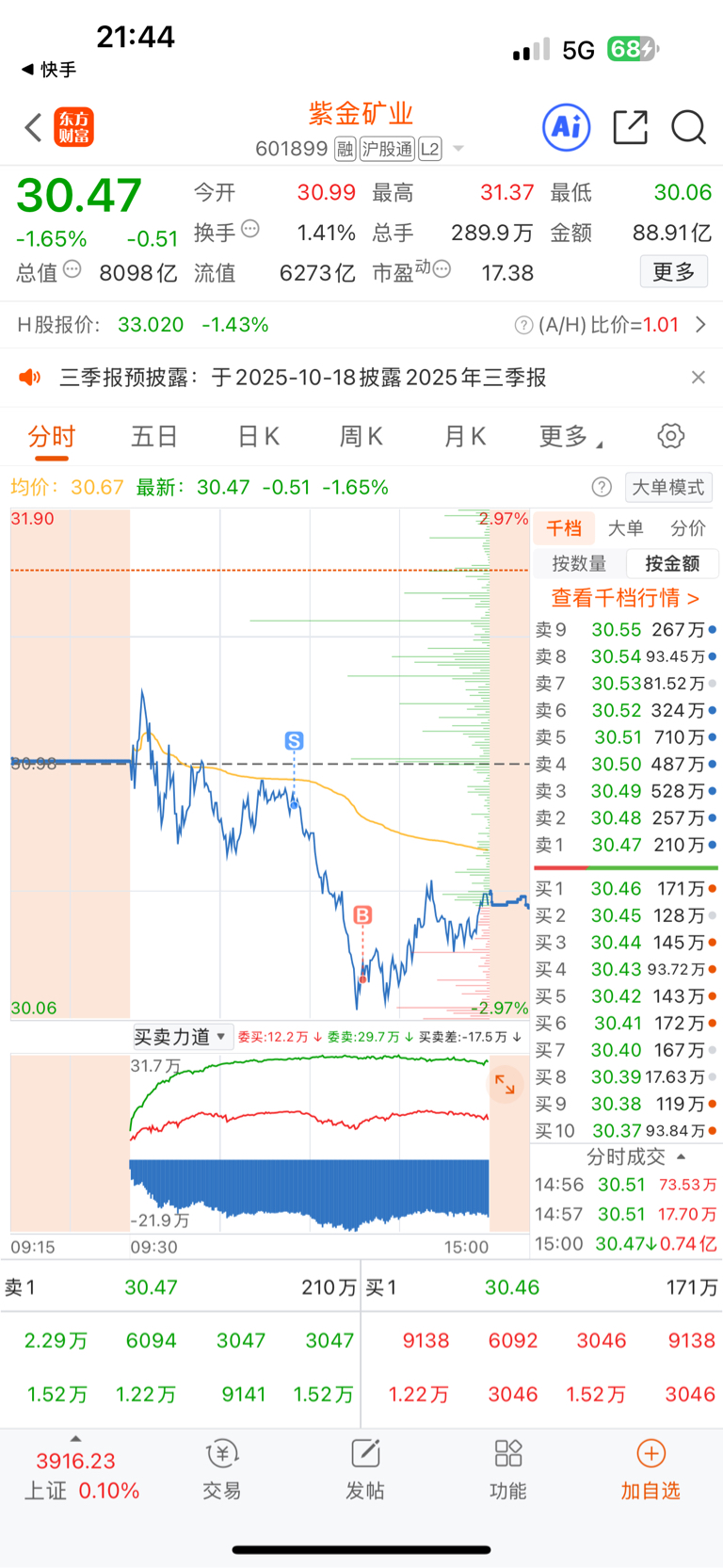 今天尾盘买了点美国消费明天应该是吃肉,做T紫金矿业,成本31.68。