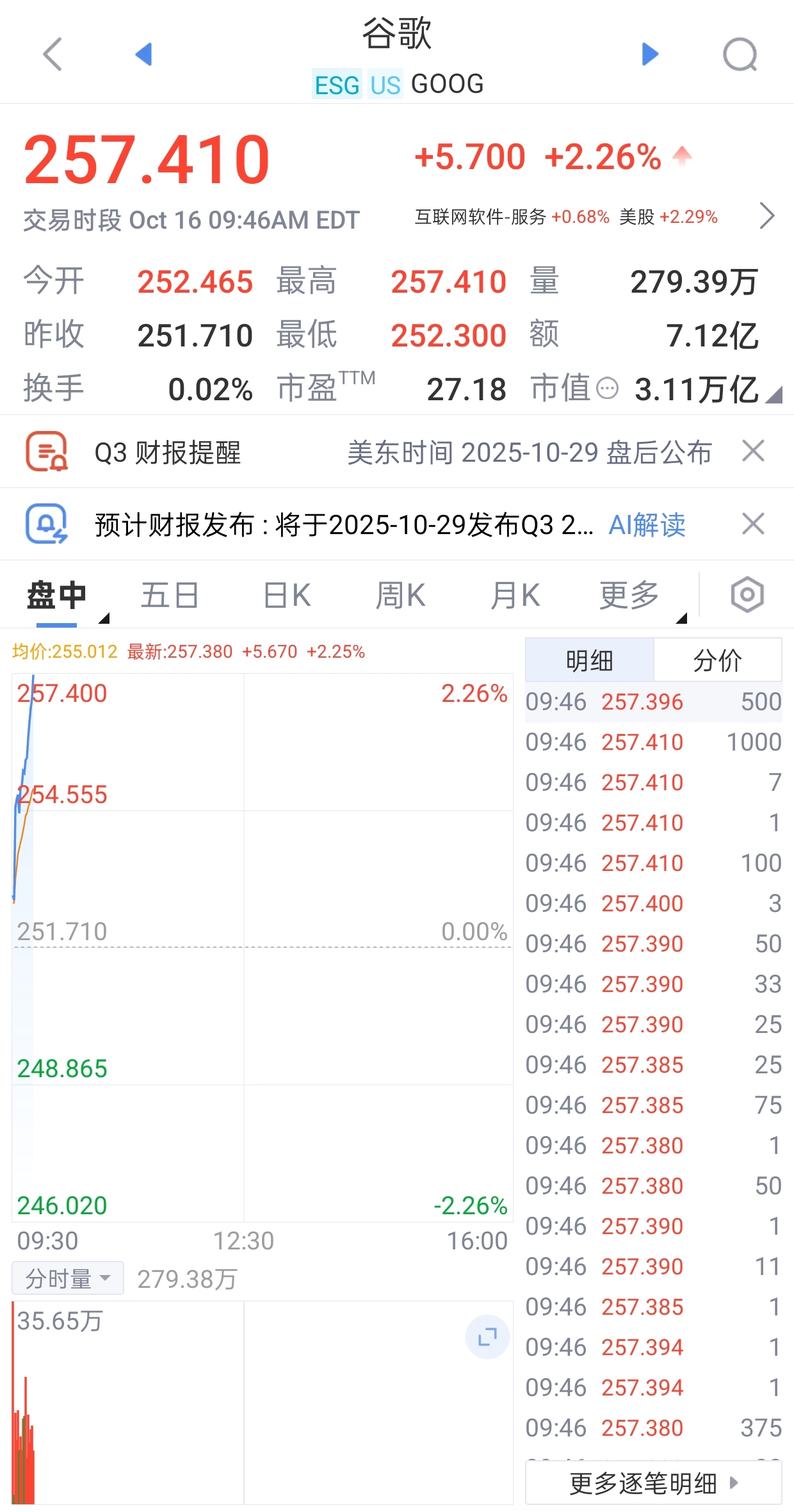 美股直播客今天要为谷歌呐喊!为谷歌点赞!高开高走,涨幅超过百分之二,并且创历史新