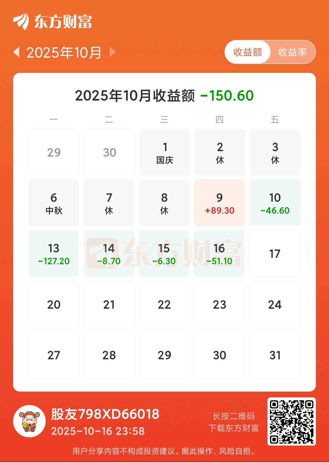 今天亏损51.10元