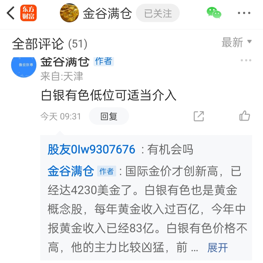 昨日他高开高走,高位震荡后尾盘涨停。白银有色被不少人误认为是生产白银的公司,他实际是甘肃白银市的帼企白银有色集团,公司主要生产铜、铅锌、黄金以及白银。公司目前半年黄金收入就超过83亿。目前国际金价不断创新高,目前金价已经超过4200美金了。目前白银有色价格不高,近期主力比较凶猛,前面曾经有三连板。经过回调整理后,昨日开启了新的上升趋势。白银有色跟国际金价走势有很强的相关性。