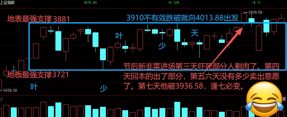 逢七必变,是向上还是向下就得看住支撑位,图中突破写成他破。只做盘前预测,不做马后炮盘后总结啰里啰嗦,大道至简唯有裸k。