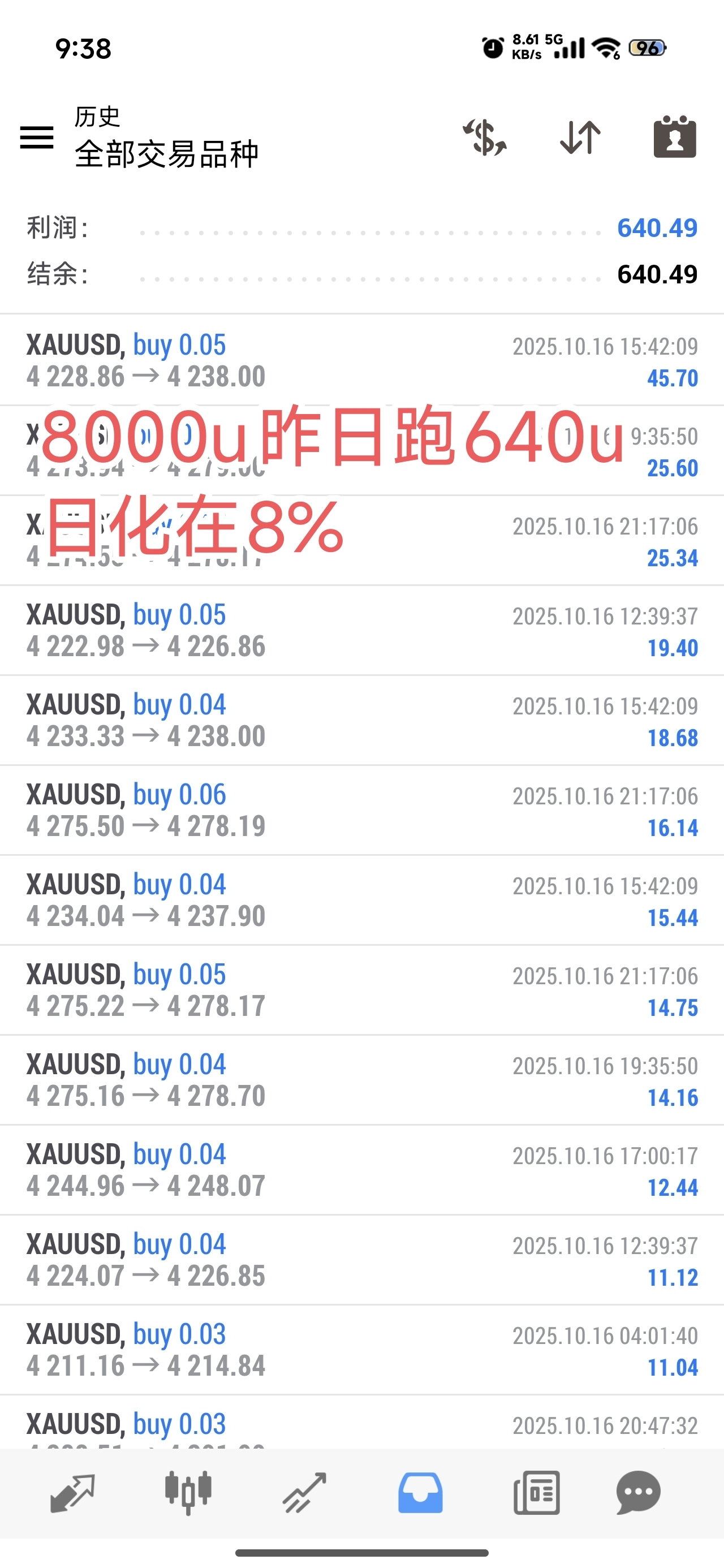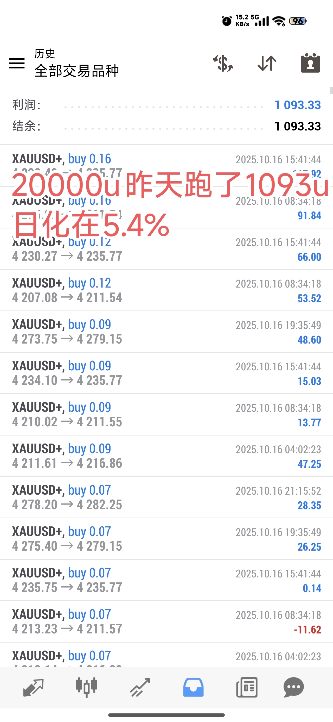 10.16号战绩分享,20000u昨日跑了1093u,日化在5.4%80000u