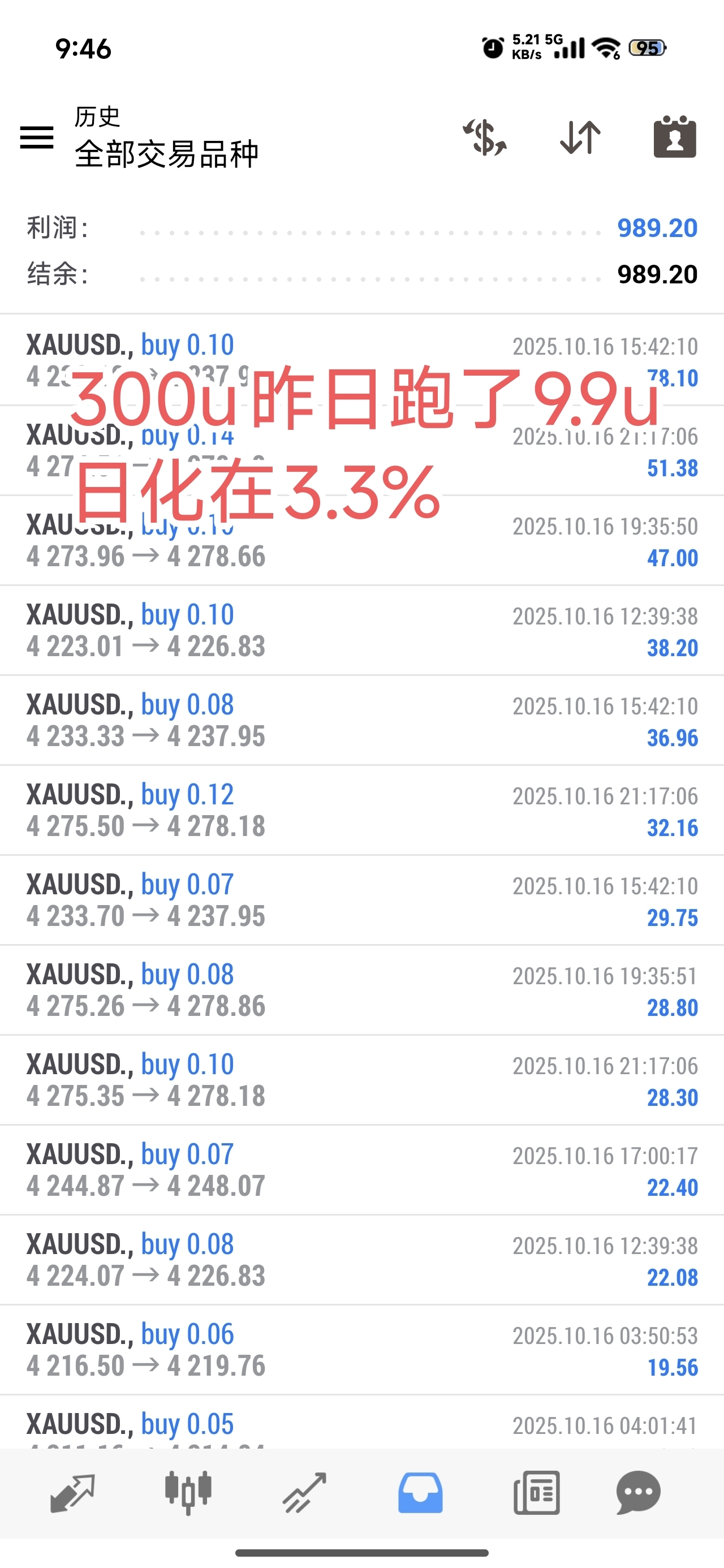 300u(美分)昨日跑了9.9u,日化在3.3%