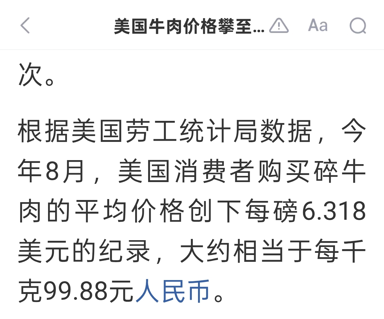 在课堂上有学生提问说,他爸妈一个月收入四千多RMB,但牛肉价格要几十块钱,猪肉价格也要十几块钱。