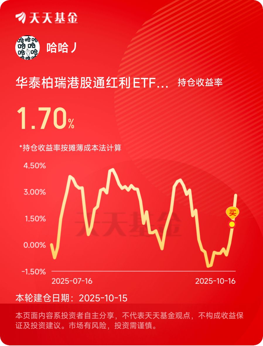 听人说四季度要关注红利和消费,一看华泰港股通红利还真强,连涨3天后今天小幅回调,