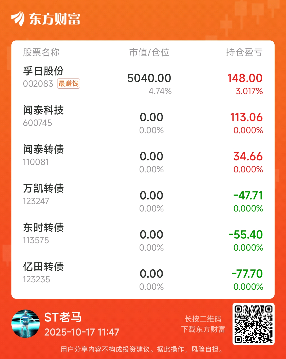 郑重声明:用户在财富号/股吧/博客等社区发表的所有信息(包括但不限于文字、视频、音频、数据及图表)仅代表个人观点,与本网站立场无关,不对您构成任何投资建议,据此操作风险自担。请勿相信代客理财、免费荐股和炒股培训等宣传内容,远离非法证券活动。请勿添加发言用户的手机号码、公众号、微博、微信及QQ等信息,谨防上当受骗!