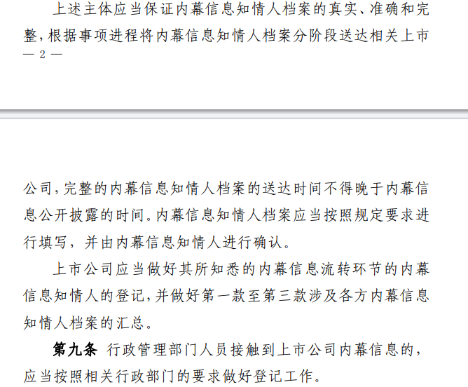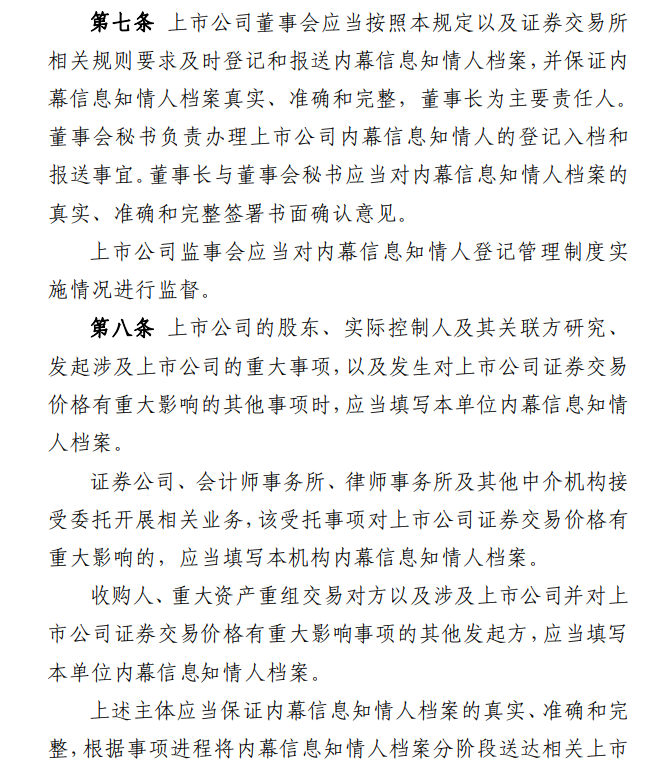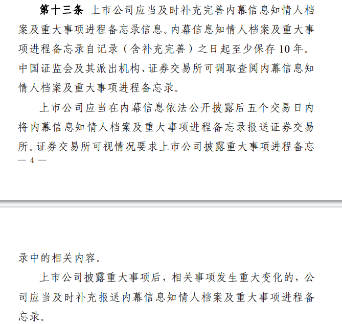 接下来我要聊一下相关保密制度,或者叫内幕知情人信息报备制度。以下内容摘自证监会《关于上市公司内幕信息知情人登记管理制度的规定》,感兴趣的可以逐字研究分析。