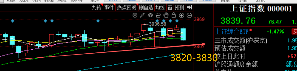 今天早评说指数在没有银行、保险复盘的情况下,估计今天会命悬一线,可能会大跳水,短期下方先看3820-3830的支撑,如我所料,今天上证指数从3921一度跳水到3835,收盘大跌1.95%,双创指数更是跌幅超3%,近期有细心看文章的老铁会发现,笔者一直都在提示大盘要调整,这两天也明确在早评中提示要逢高减苍,昨天说双创指数达到强阻力位,要注意回调风险,相信执行力OK的老铁,至少会提前减苍,或许今天的下跌会伤不到你。今天大跌后,那接下来怎么走呢?我认为短期指数低点连线趋势线附近3820-3830下跌动能会减弱,或许周一惯性下探就到这点位了,届时可以博一下短线1-2天的反弹。