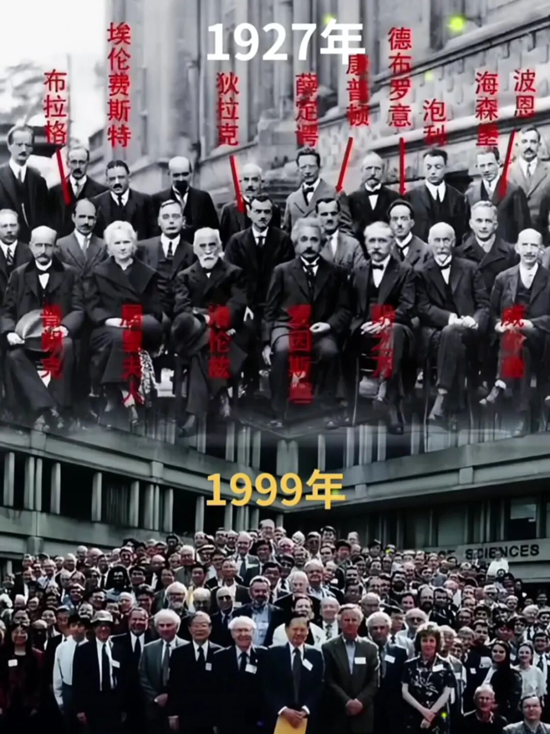 仅仅一年后,一张“国际物理学会议”合影里,34岁的杨振宁已稳居前排正中。