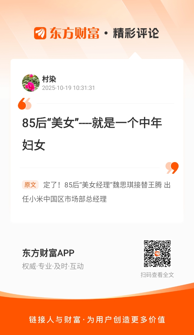 85后“美女”----就是一个中年妇女 我在《定了!85后“美女经理”魏思琪接替王腾 出任小米中国区市场部总经理》的评论获得了大家的关注。