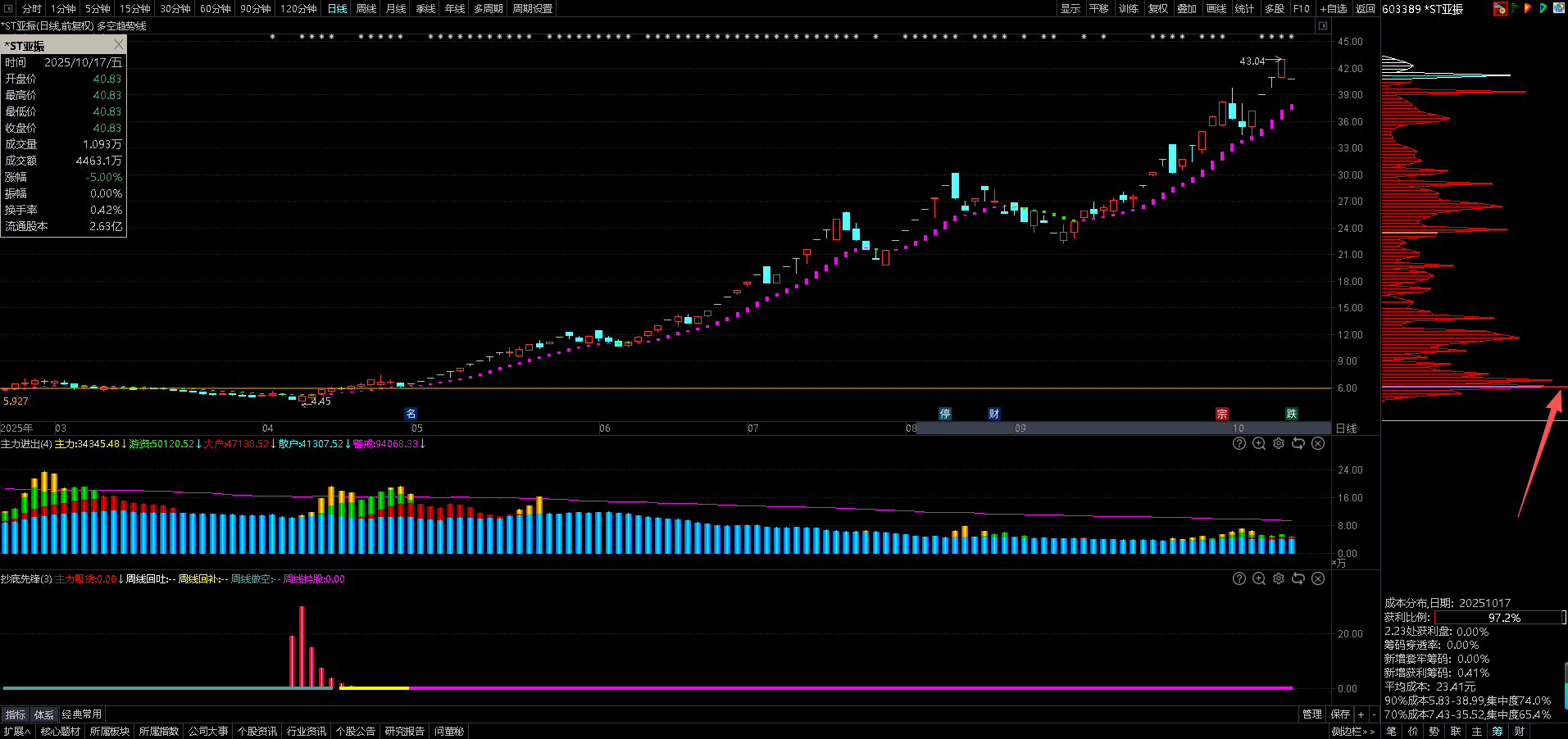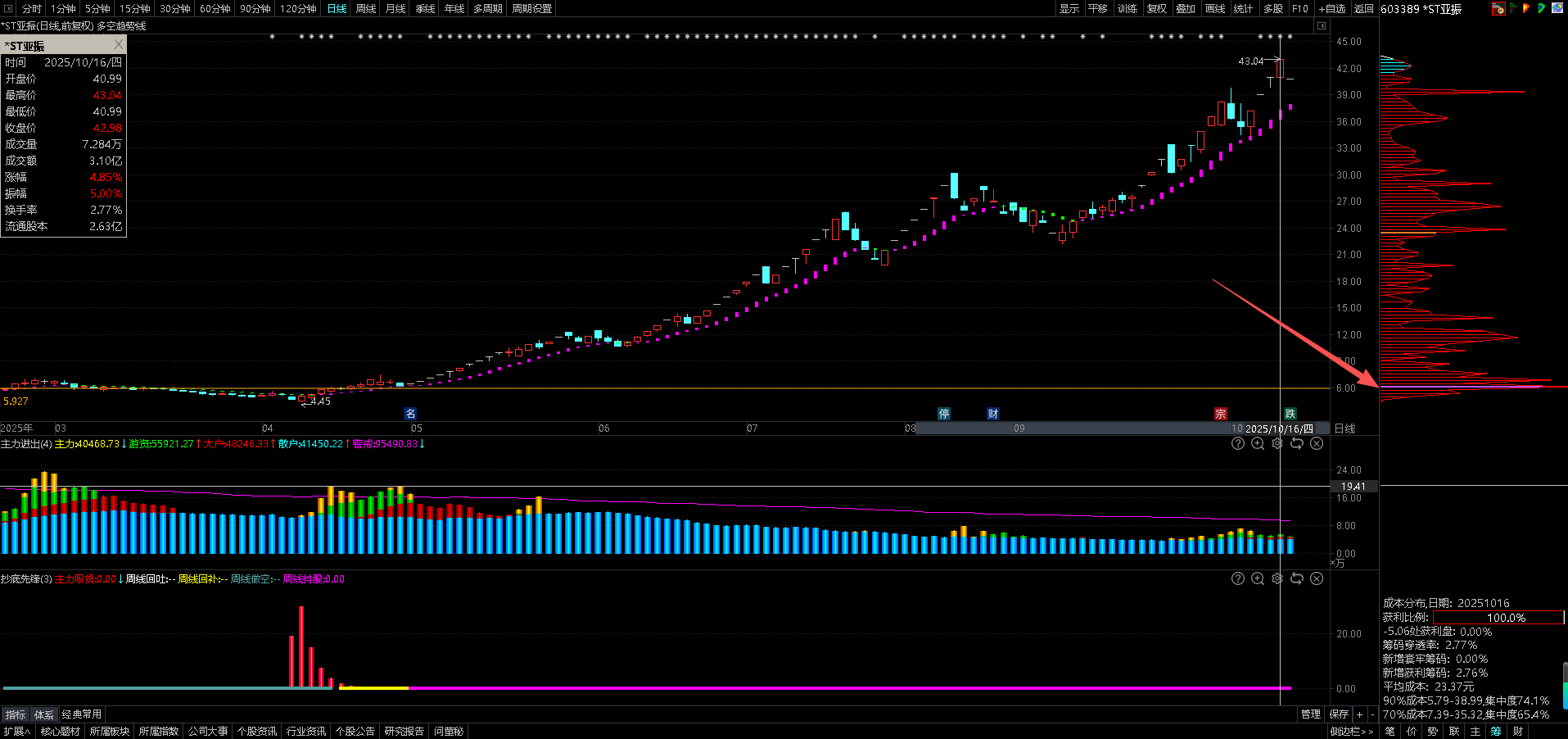 请下图,16号的筹码峰,仔细看,那第紫色的线