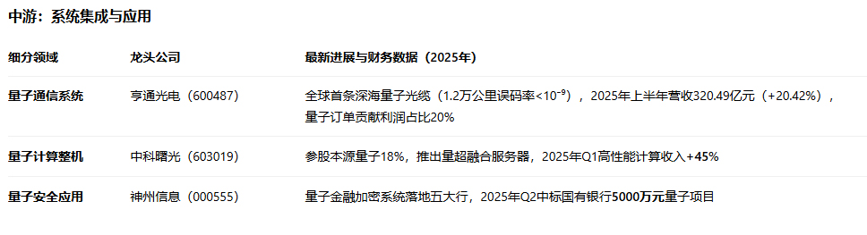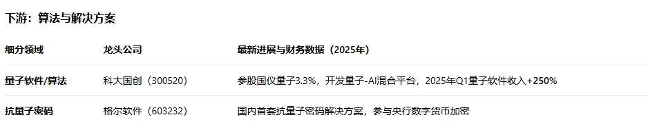 中期:布局量子-经典算力融合(中科曙光、科大国创)、量子测量(国仪量子)。