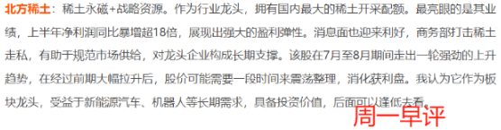$北方稀土(SH600111)$:稀土永磁+风电+新能源汽车。公司基本面优势挺突出的,作为轻稀土龙头,控股股东包钢集团拥有白云鄂博矿这个世界级资源,稀土储量全球占比高,开采配额占全国一半以上,资源掌控力强。公司还打通了“采矿—冶炼—磁材—电机”全产业链,量价齐升对盈利带动明显。下游需求来自风电、新能源汽车这些领域,磁材需求增长比较快。稀土价格上行和下游需求旺盛对业绩有支撑,短期调整震荡一下问题不大的。