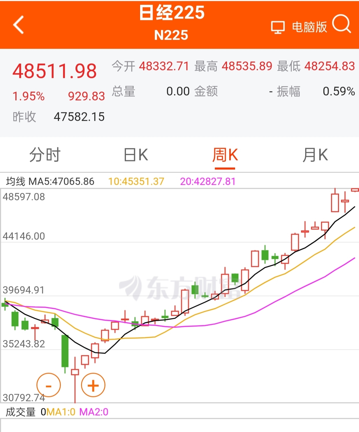 日经指数已经走在稳定上涨的通道里,这次的日本新首相又符合世界投资者的预期,今天日