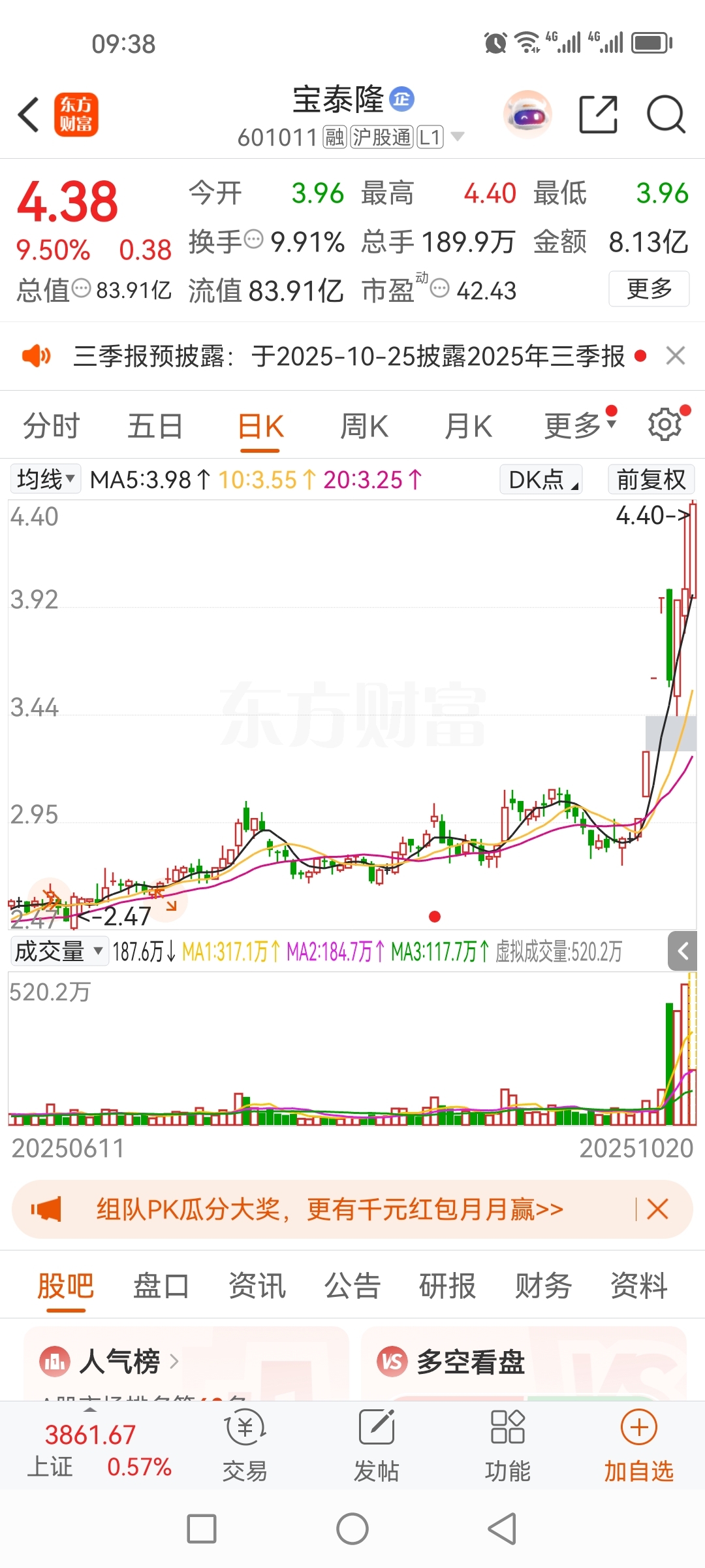 15号分享的宝泰隆601011,今天看来又涨停的一天,恭喜操作进去的粉丝们,今天