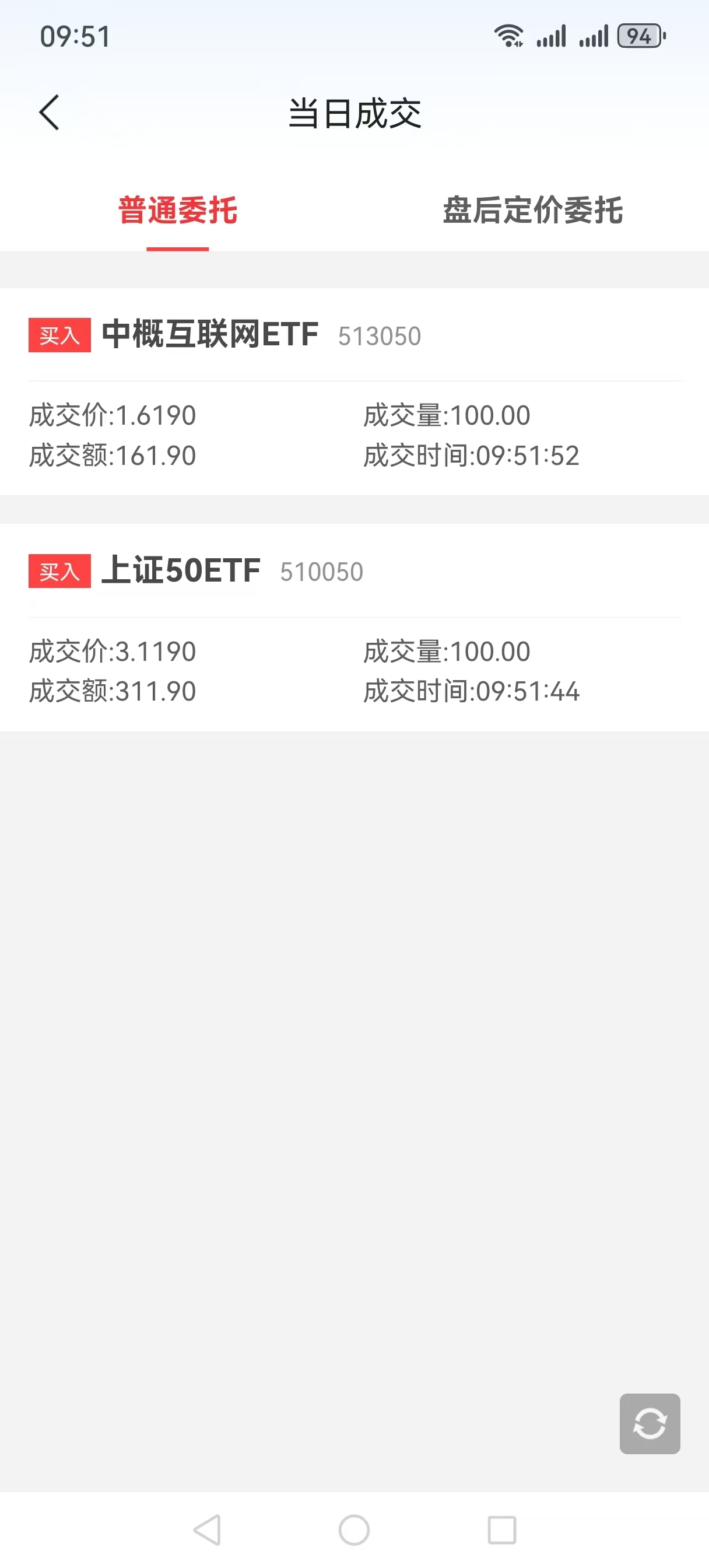 2025年10月20日每日定投500元,第80天买入上证50ETF100股买入中