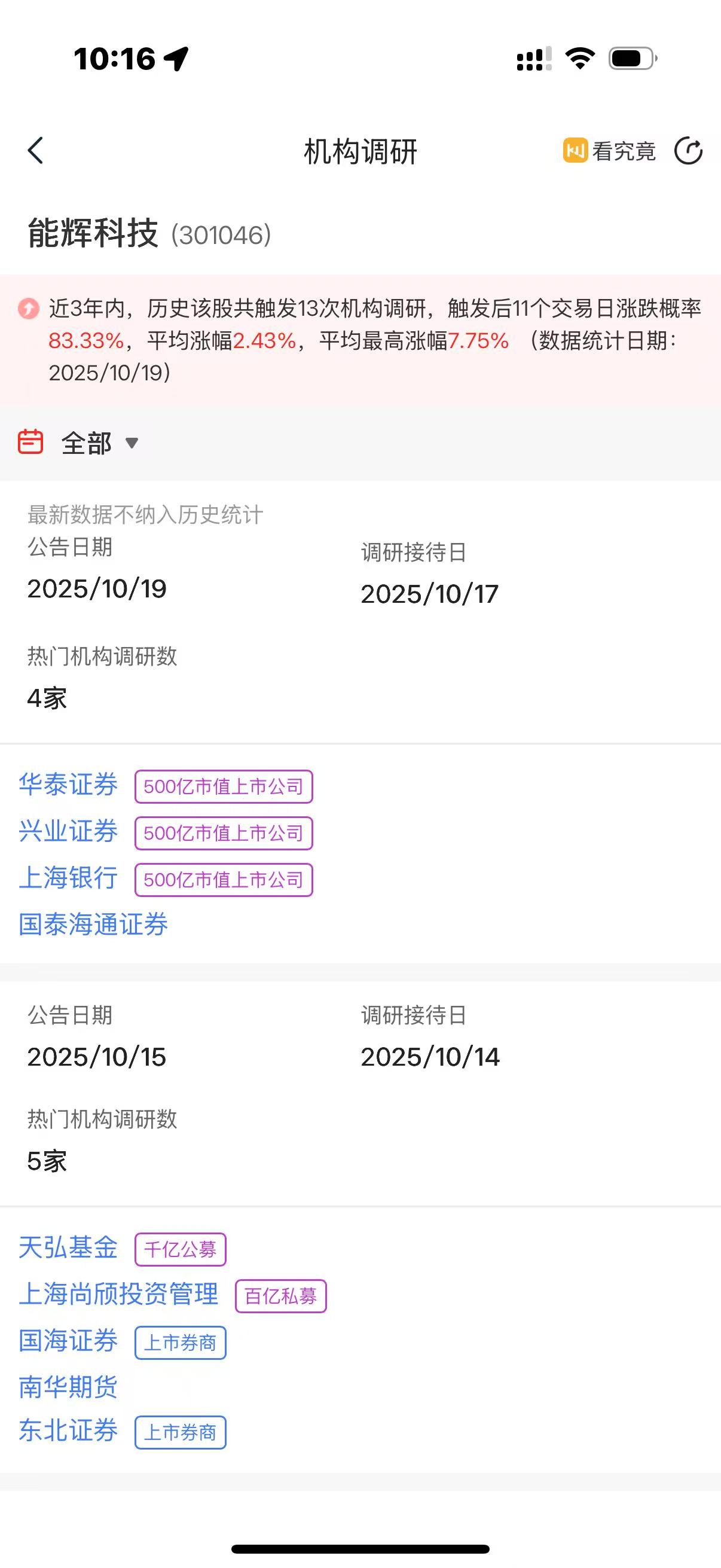 能辉科技接受华泰证券、兴业证券等机构调研,这票历史接受机构调研后,11个交易日内