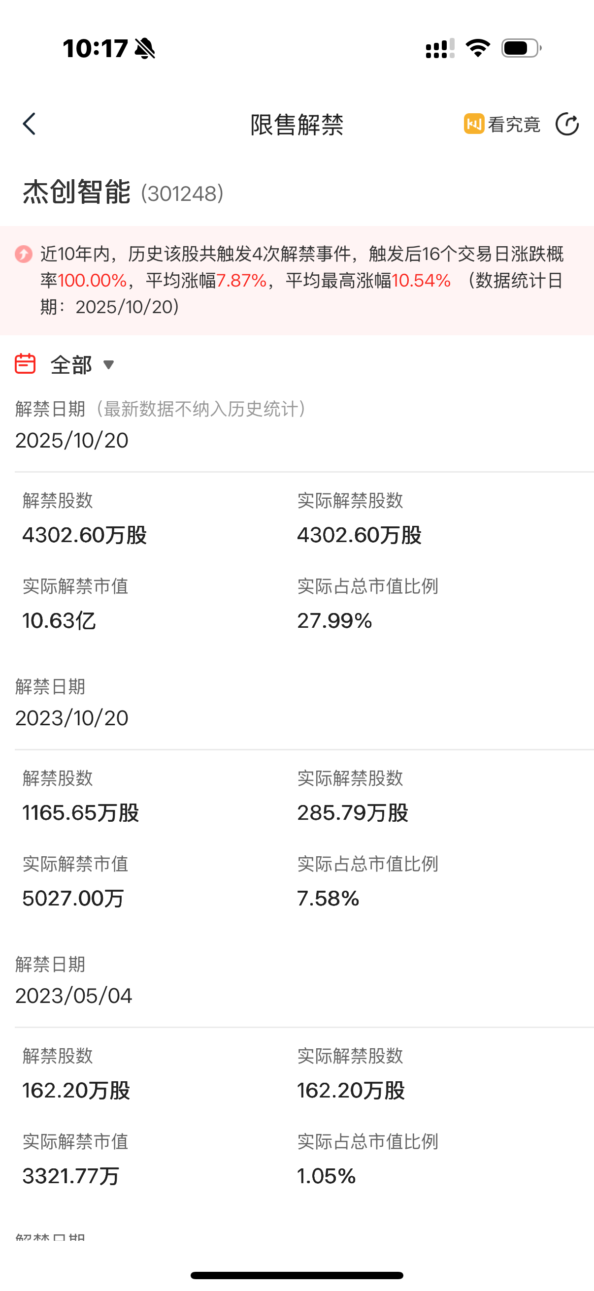 杰创智能发生海量解禁,这票历史发生解禁后比较神奇,在波动后上涨概率反而大,今日也